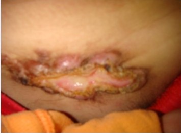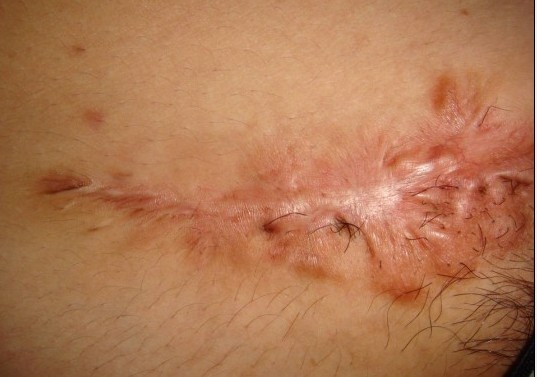 | 腹部做疝气手术后留下增生型疤痕疙瘩 |
