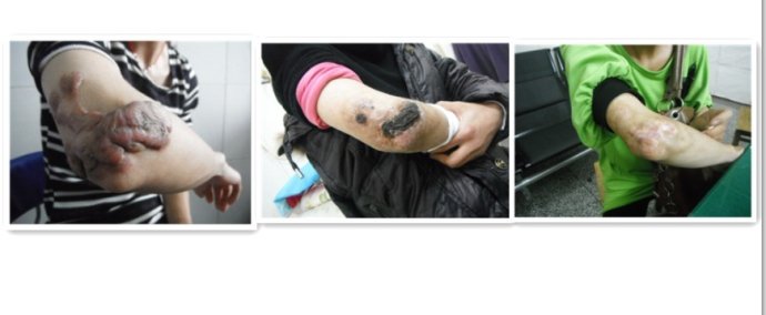| 胳膊外伤留下大片疤痕疙瘩 |