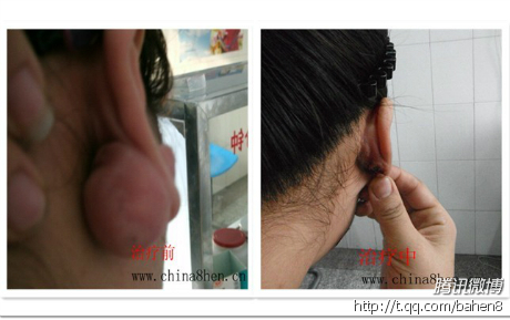 这是一个女孩打耳孔后留下的疤痕疙瘩,治疗了两个疗程后的情况。这个女孩主要是疤痕体质,所以打耳孔后才会留下这样可怕的疤痕疙瘩。所以奉劝那些爱美的女孩如果打耳孔的时候一定要慎重啊。 疤痕体质的人群皮肤损伤都容易留下色红,质硬突出正常皮肤的疤痕疙瘩的,所以一定要注意的。 |