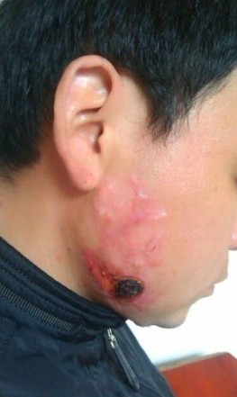 | 右面痤疮型疤痕疙瘩患者治疗前、治疗中的真实照片 | |||